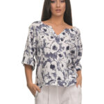 Περιγραφή: Μπλούζα λινή μανίκι Unique Printed Fabric ,άνετη γραμμή
