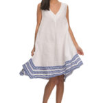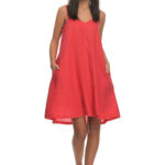 Περιγραφή: Φόρεμα midi με υφαντό τελείωμα ,αμάνικο σε άνετη γραμμή