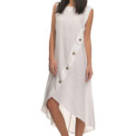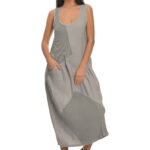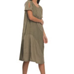 Περιγραφή: Φόρεμα σε έναν μοναδικό συνδυασμό λινό με βαμβακερό γκοφρέ ύφασμα ,μανίκι με κόψιμο, τσέπες σε άνετη γραμμή