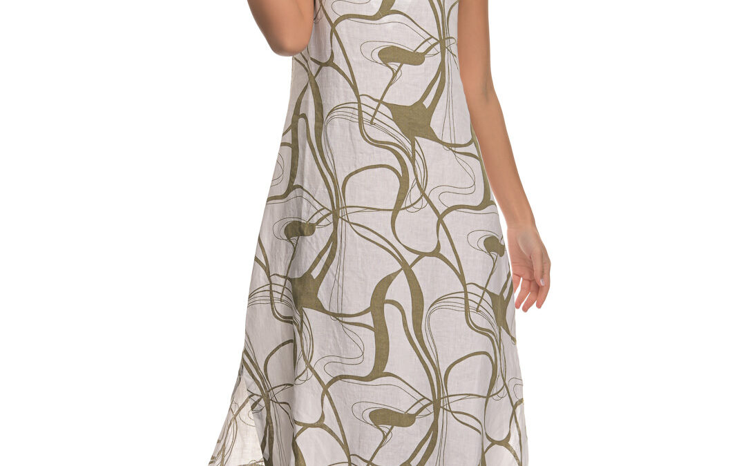 4670PR Φόρεμα print λινό 100% S – XL λευκό μπλέ print – λευκό olive print από Kyk_Morait | Φεβ 13, 2021