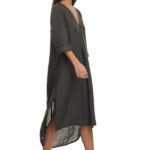 Περιγραφή: Φόρεμα λινό 100% elegant με V λαιμόκοψη και μακρύ μανίκι. Άνετη γραμμή
