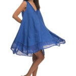 Περιγραφή: Φόρεμα λινό 100% midi ,άνετη γραμμή με γάζα λινή στο τελείωμα